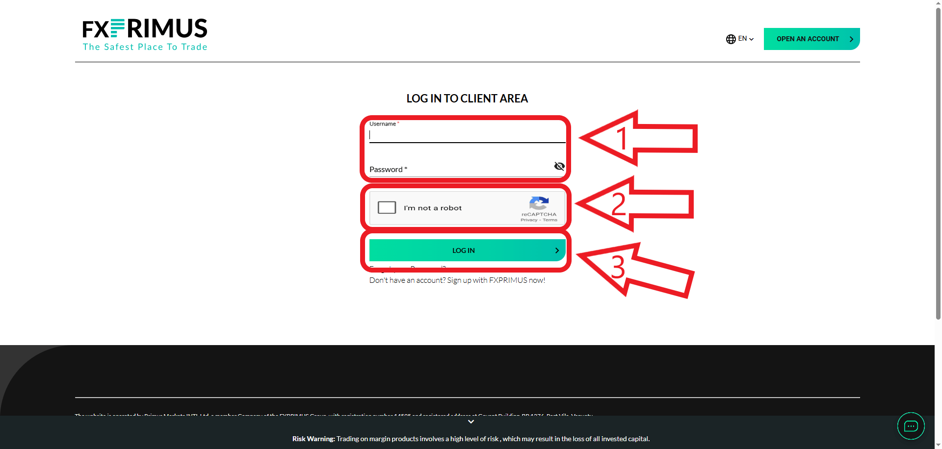 جهت ثبت نام در بروکر اف ایکس پریموس از اینجا وارد سایت این بروکر شوید و بر روی "Register" کلیک کنید.