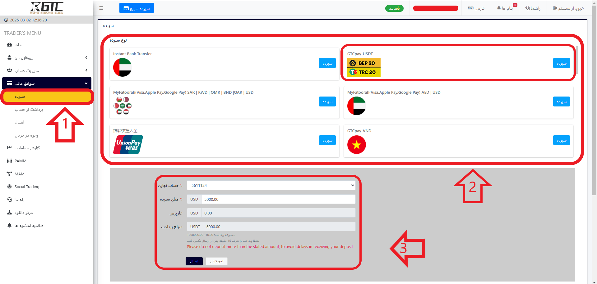 نحوه واریز به بروکر GTCFX