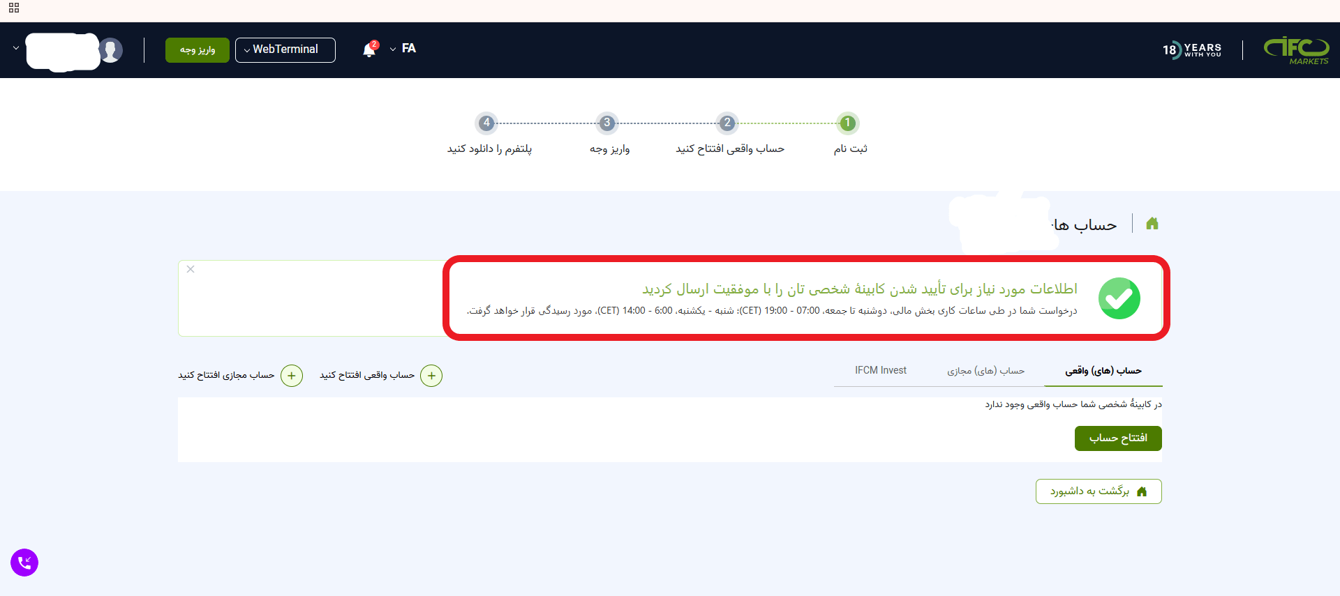 با تایید ایمیل خود در بروکر IFC Markets مرحله ثبت نام شما به پایان میرسد حالا میتوانید وارد حساب کاربری خود شوید.