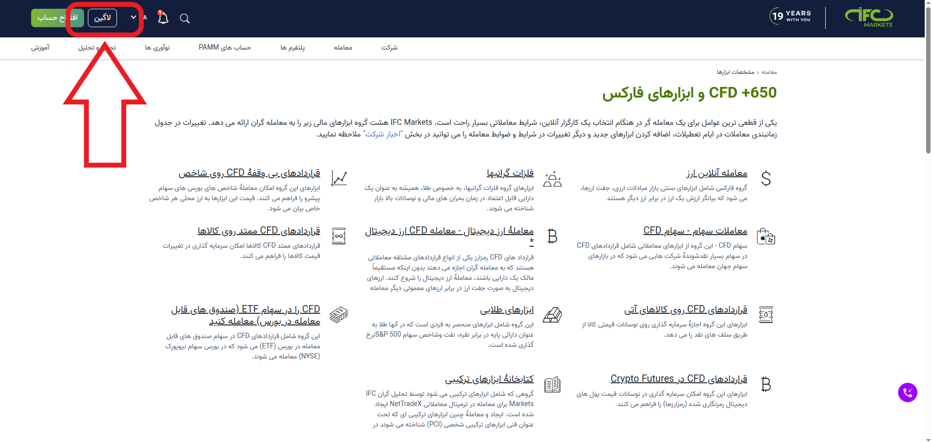 جهت ورود به پنل کاربری در بروکر ای اف سی مارکتس در صفحه اول سایت بر روی "لاگین" کلیک کنید.