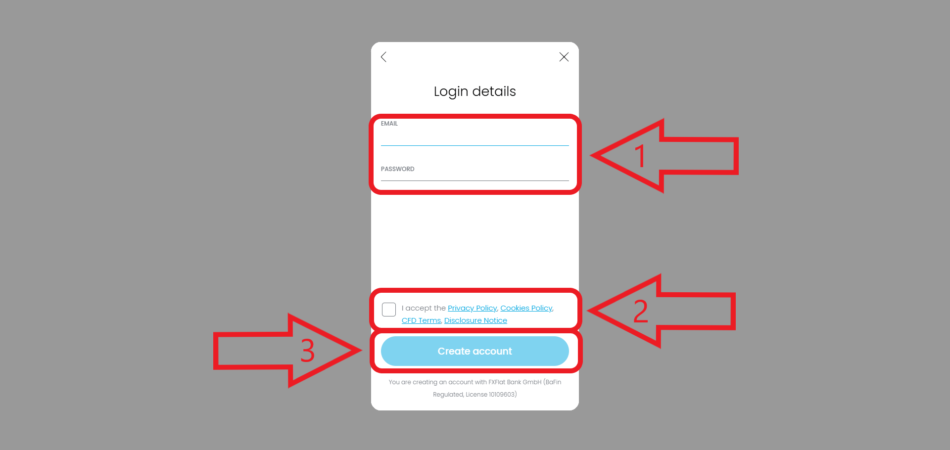 در آخر یک ایمیل آدرس همراه با یک رمز عبور برای حساب کاربری خود وارد کنید، تیک قبول قوانین را بزنید و بر روی "Create account" کلیک کنید.